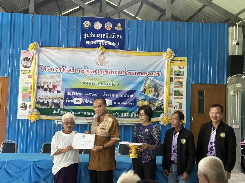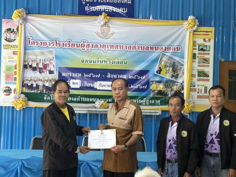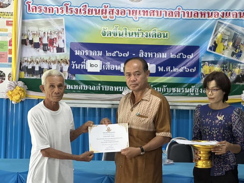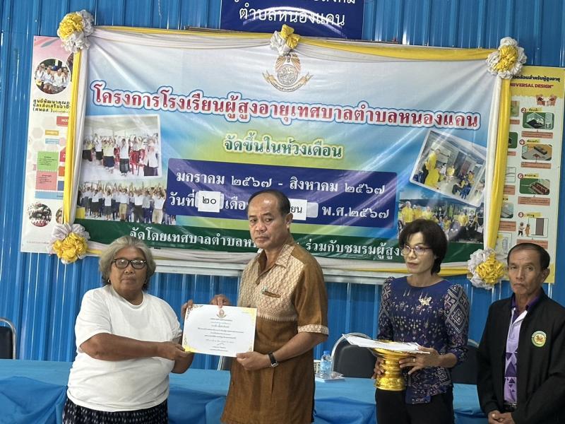 รายละเอียด : วันศุกร์ ที่ 20 กันยายน 2567 ณ โรงเรียนผู้สูงอายุตำบลหนองแคน อำเภอดงหลวง จังหวัดมุกดาหาร จัดกิจกรรมโครงการฝึกอบรมการดูแลสุขภาพ ผู้สูงอายุ ผู้พิการ พร้อมมอบเกียรติบัตรแก่ผู้สูงอายุ ประจำปีงบประมาณ พ.ศ.2567 โดยนายบรรจง ไชยเพชร นายกเทศมนตรีตำบลหนองแคน เป็นประธานกล่าวเปิดกิจกรรม ร่วมด้วยคณะผู้บริหาร,สมาชิกสภา,ผู้นำชุมชน,ชมรมผู้สูงอายุโรงเรียนผู้สูงอายุ,พนักงานเจ้าหน้าที่,ลูกจ้างและวิทยากร ซึ่งให้ความรู้การดูแลสุขภาพ การออกกำลังกาย เรื่องการรับประทานอาหารที่มีประโยชน์ ให้มีสุขภาพร่างกายแข็งแรงทั้งกายและใจ มีกิจกรรมสันทนาการ,มอบเกียรติบัตร และรับประทานอาหารเที่ยงร่วมกัน ดำเนินการโดย ศูนย์พัฒนาคุณภาพชีวิตและส่งเสริมอาชีพผู้สูงอายุผู้พิการตำบลหนองแคน ร่วมบูรณาการกองทุนหลักประกันสุขภาพเทศบาลตำบลหนองแคน