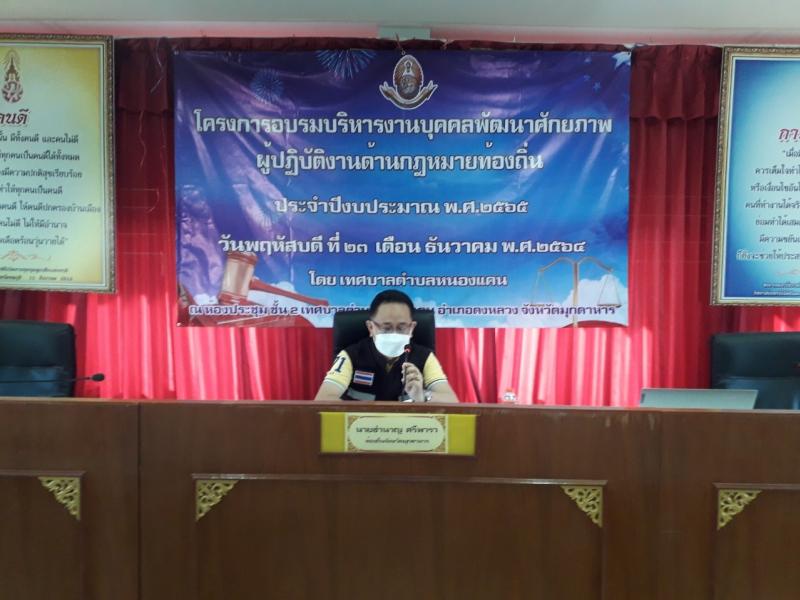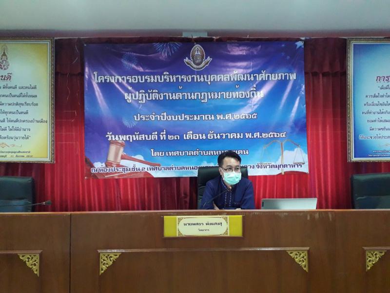 เมื่อวันพฤหัสบดีที่ 23 ธันวาคม 2564 จัดโครงการอบรมบริหารงานบุคคลพัฒนาศักยภาพผู้ปฏิบัติราชการด้านกฎหมายท้องถิ่นประจำปีงบประมาณ พ.ศ.2565