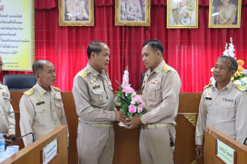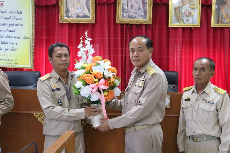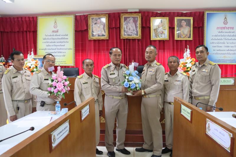 ปลัดเทศบาลตำบลหนองแคนมอบดอกไม้ขอแสดงความยินดีและร่วมต้อนรับคณะผู้บริหารท้องถิ่น สมาชิกสภาท้องถิ่นเทศบาลตำบลหนองแคน