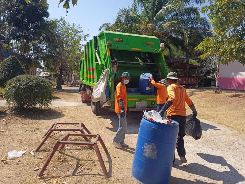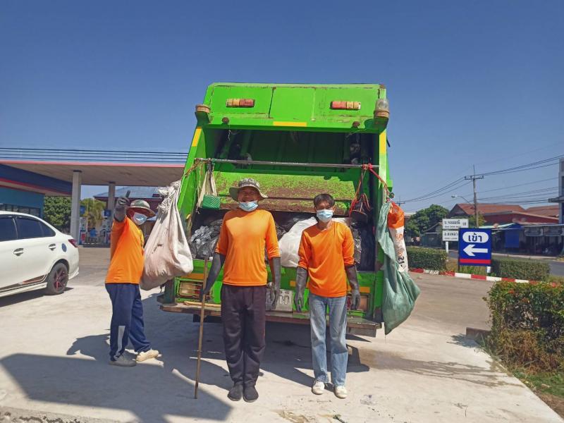 พนักงานเก็บขยะเทศบาลฯ ลงพื้นที่ปฏิบัติงานเก็บขนขยะเส้นทางบ้านหนองแคน