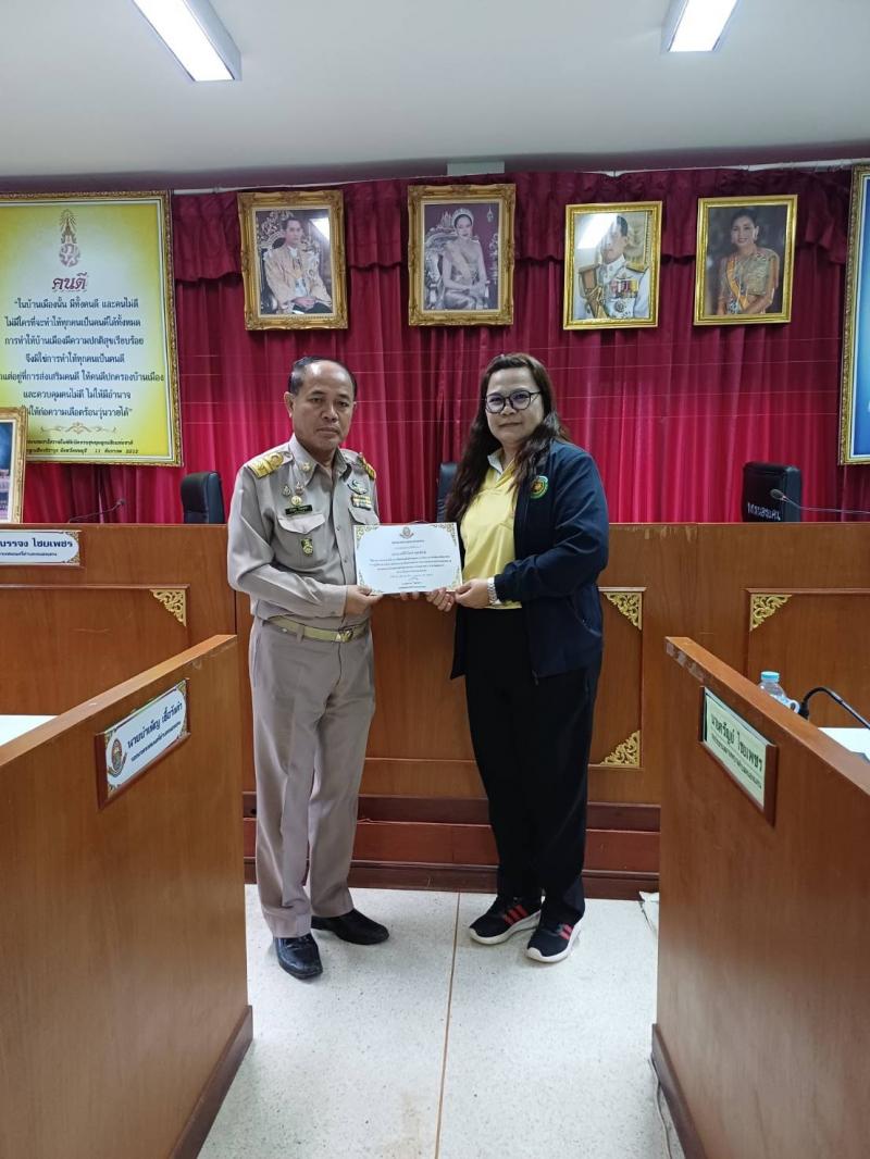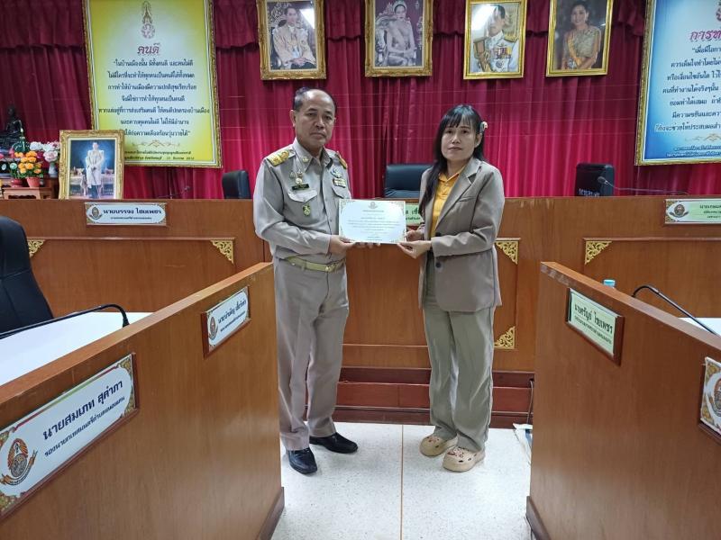 #เทศบาลตำบลหนองแคน โดย นายบรรจง ไชยเพชร นายกเทศมนตรีตำบลหนองแคน รับมอบเกียรติบัตร ผู้ได้ผ่านการอบรม ตามโครงการฝึกอบรมส่งเสริมคุณธรรม จริยธรรม เพื่อพัฒนาศักยภาพในการปฏิบัติราชการสำหรับผู้บริหารสมาชิกสภาเทศบาล พนักงานเทศบาล พนักงานครูเทศบาล และพนักงานจ้างเทศบาลตำบลหนองแคน อำเภอดงหลวง จังหวัดมุกดาหาร ประจำปีงบประมาณ 2568