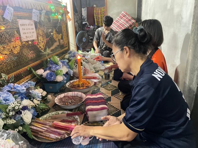 คณะผู้บริหารสมาชิกสภา ผู้นำท้องที่ ท้องถิ่น พนักงาน ลูกจ้าง ร่วมฟังสวดอภิธรรม นายทาย เหง้าโอสา (พ่อคุณครูอุไรรัตน์ เหง้าโอสา) บ้านเลขที่ 25 หมู่ที่ 5 บ้านก้านเหลืองดง ต.หนองแคน อ.ดงหลวง จ.มุกดาหาร