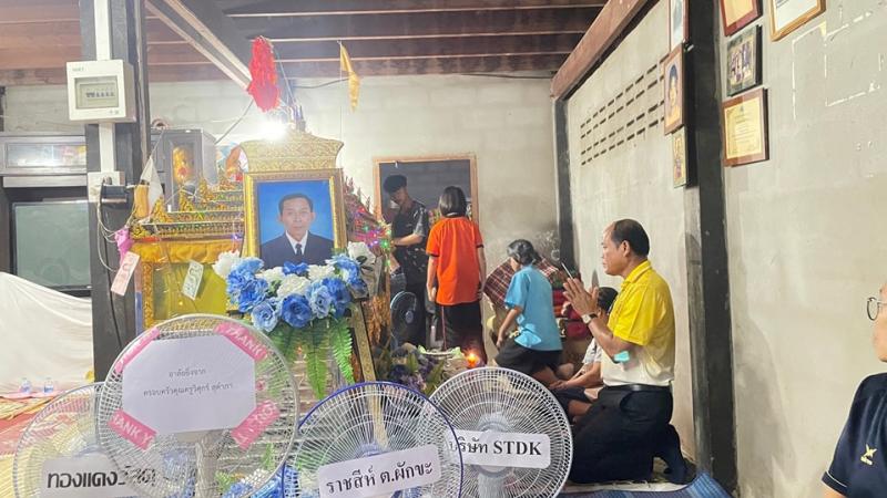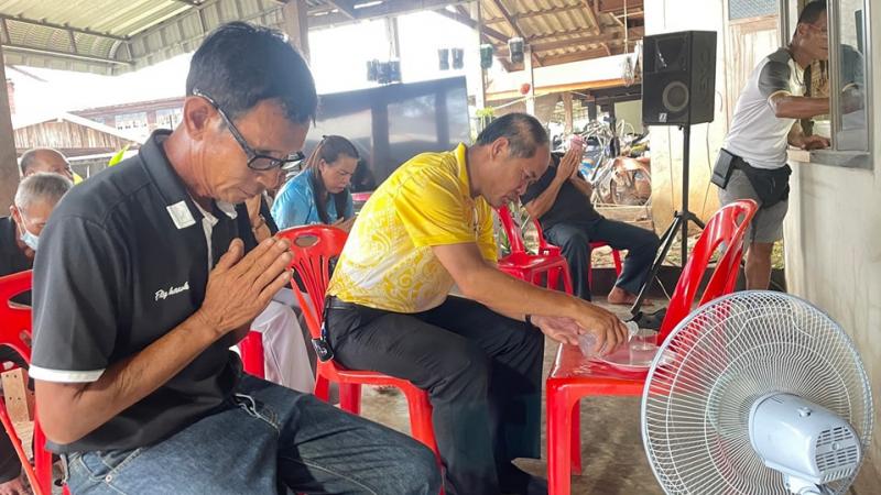 คณะผู้บริหารสมาชิกสภา ผู้นำท้องที่ ท้องถิ่น พนักงาน ลูกจ้าง ร่วมฟังสวดอภิธรรม นายทาย เหง้าโอสา