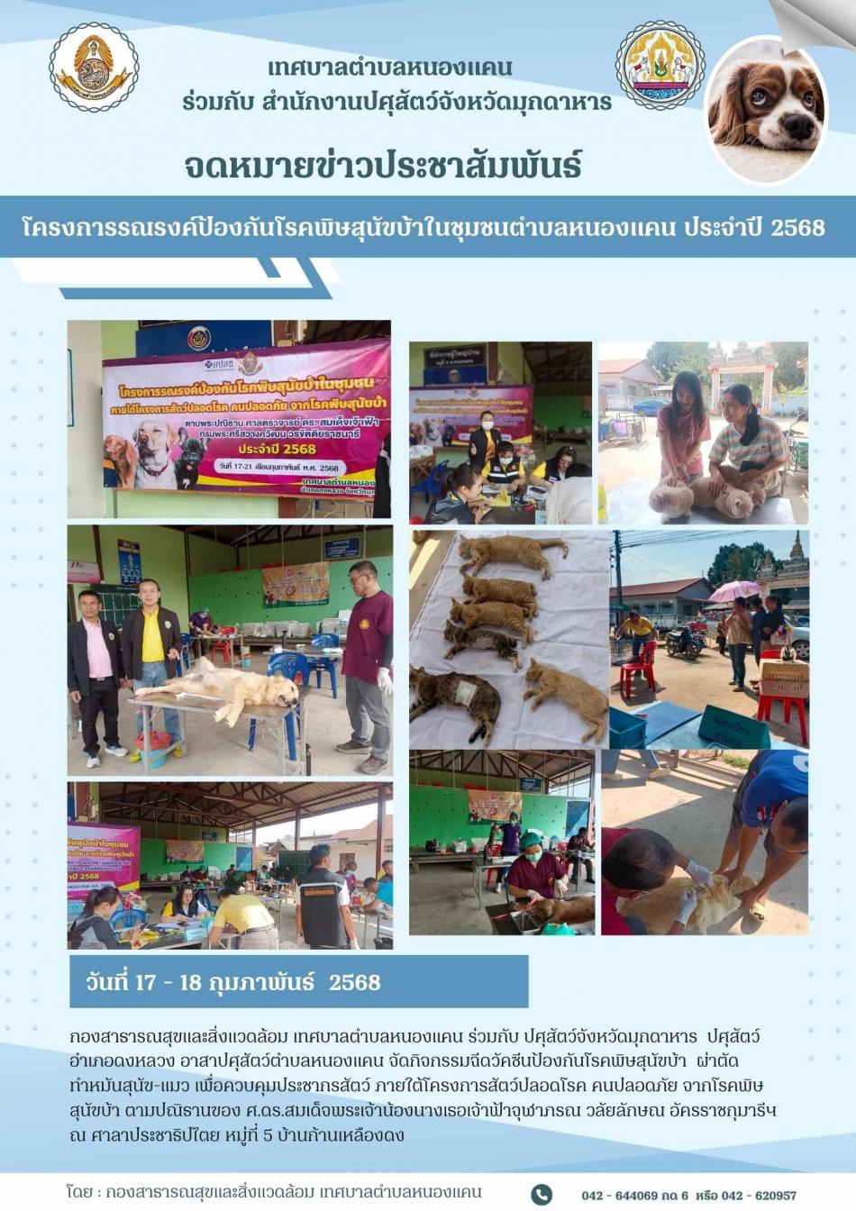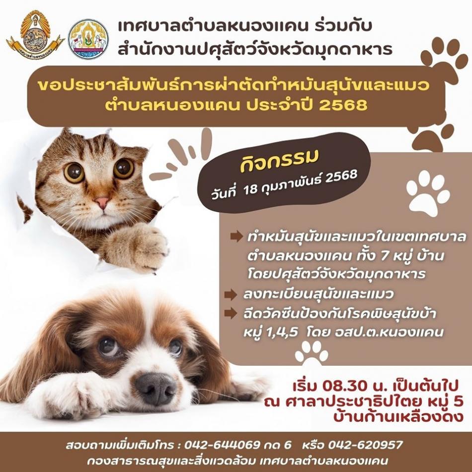 ขอประชาสัมพันธ์การผ่าตัดทำหมันสุนัขและแมวตำบลหนองแคน ประจำปี 2568 [11 กุมภาพันธ์ 2568]