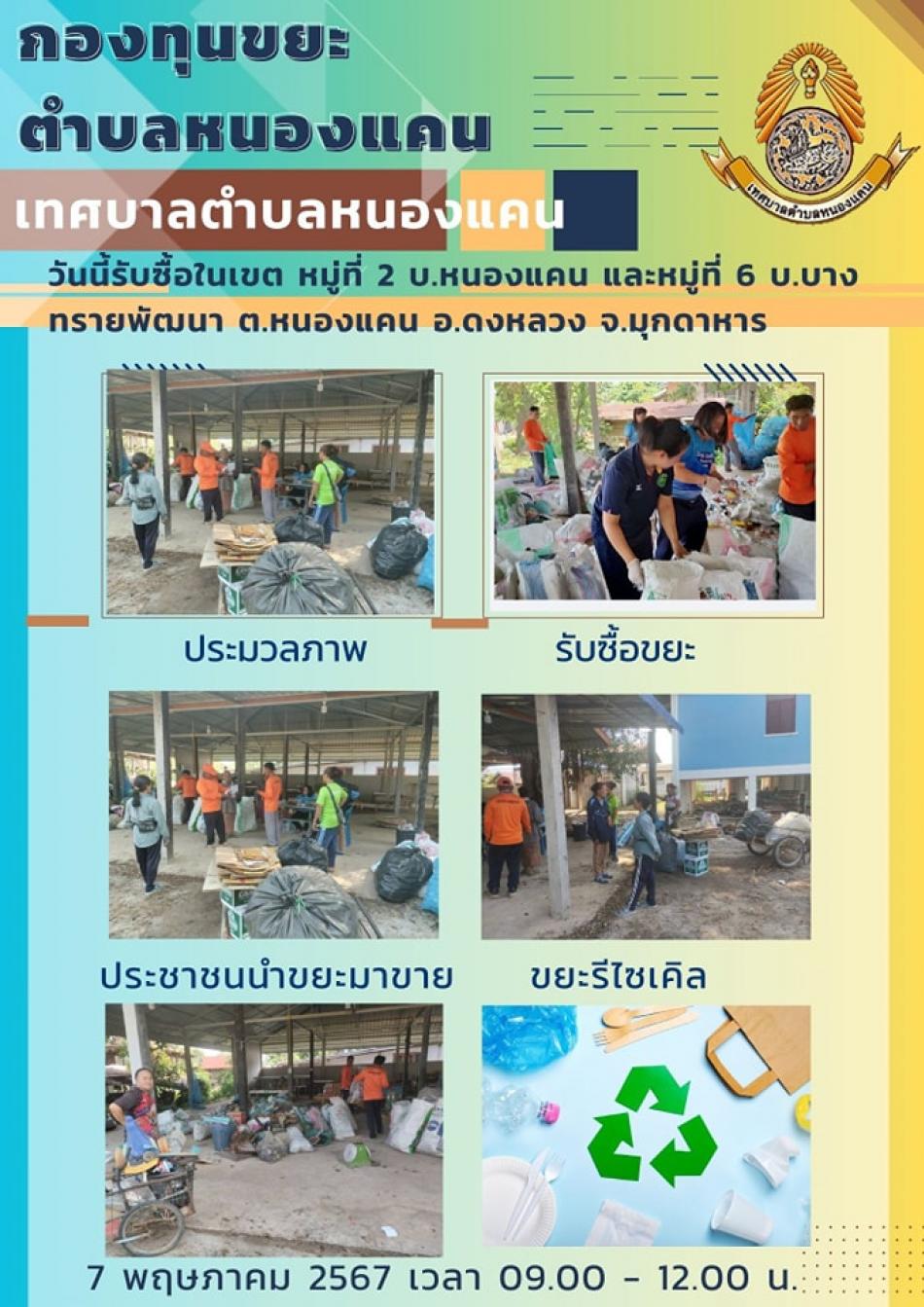 กองทุนขยะชุมชนตำบลหนองแคน รับซื้อขยะ หมู่ที่ 2,6 บ้านหนองแคน,และบ้านบางทรายพัฒนาตำบลหนองแคนอำเภอดงหลวง จังหวัดมุกดาหาร [8 พฤษภาคม 2567]