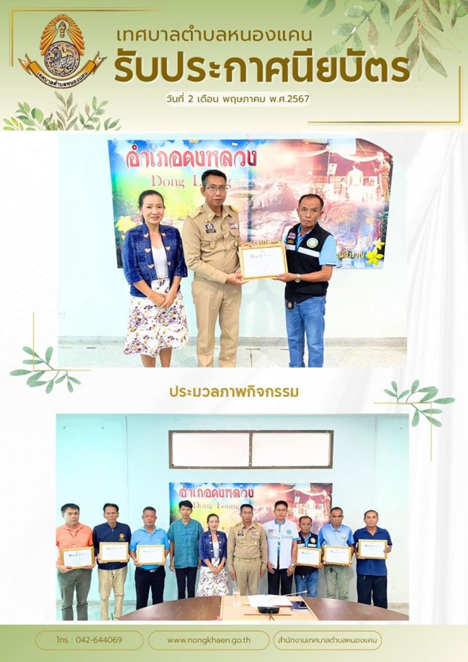 เทศบาลตำบลหนองแคน ได้รับประกาศนียบัตร เรื่อง ตำบลหนองแคนเป็นองค์กรปกครองส่วนท้องถิ่น ได้รับการรับรองเป็นพื้นที่ปลอดโรคพิษสุนัขบ้า ระดับท้องถิ่น มอบโดยนายนราวิชญ์ มณีฤทธิ์ นายอำเภอดงหลวง [2 พฤษภาคม 2567]