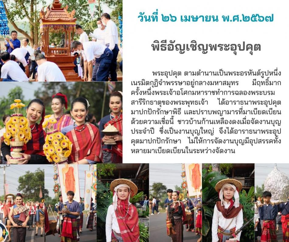 ขอเชิญร่วมกิจกรรมโครงการจัดงานประเพณีบุญแห่พระอุปคุต ประจำปีงบประมาณ พ.ศ.2567 ในวันศุกร์ ที่ 26 เมษายน 2567 เวลา 08.00 น. วัดโพธิ์ศรีแก้ว บ้านก้านเหลืองดง ตำบลหนองแคน อำเภอดงหลวง จังหวัดมุกดาหาร เพื่อสืบสาน [25 เมษายน 2567]