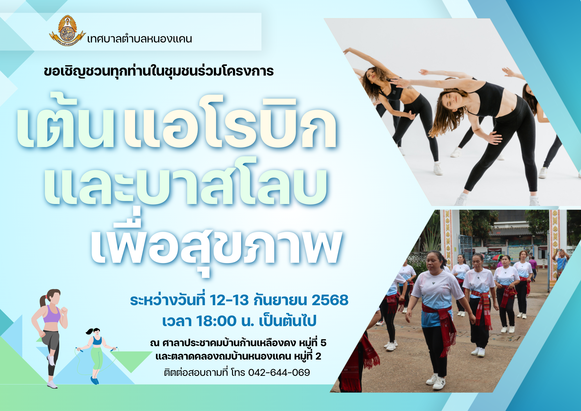 ขอประชาสัมพันธ์ เปิดรับสมัครผู้ที่สนใจและขอเชิญชวนทุกท่านมาเต้นแอโรบิกและเต้นบาสโลบเพื่อสุขภาพ [10 กันยายน 2568]