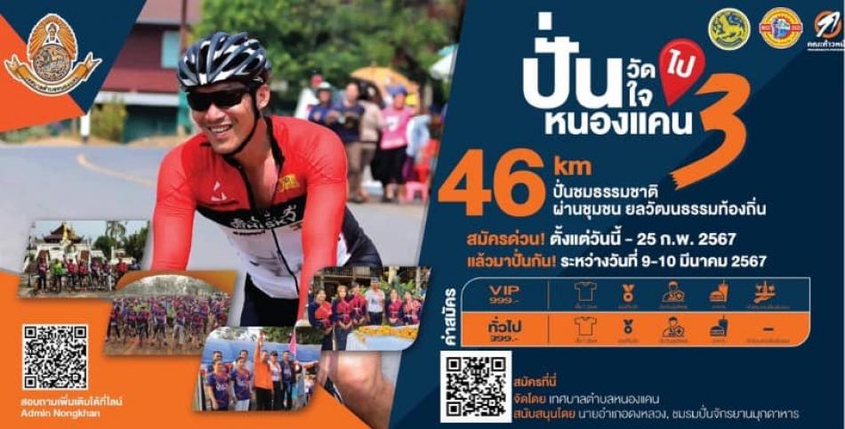 ขอเชิญชวน ผู้สนใจสมัครร่วมกิจกรรมปั่นจักรยาน "ปั่นวัดใจ ไปหนองแคน ครั้งที่ 3" ประจำปี 2567 เพื่อเป็นการส่งเสริมการออกกำลังกาย ส่งเสริมการท่องเที่ยวและชมความงดงามของวัฒนธรรมท้องถิ่น [30 มกราคม 2567]