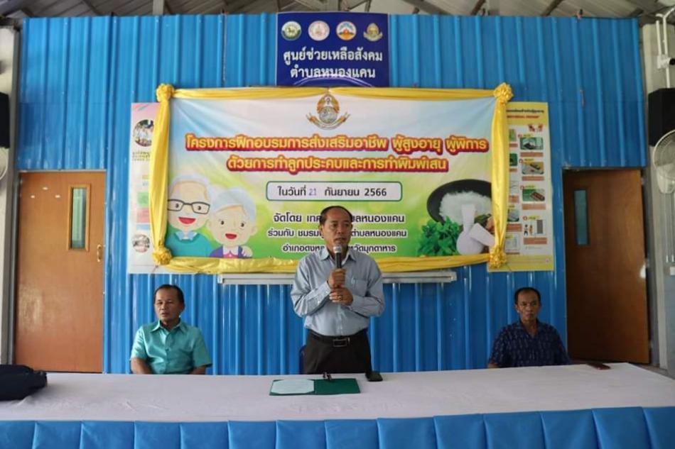 เทศบาลตำบลหนองแคนร่วมกับชมรมผู้สูงอายุตำบลหนองแคน อำเภอดงหลวง จังหวัดมุกดาหาร จัดโครงการฝึกอบรมการส่งเสริมอาชีพ ผู้สูงอายุ ผู้พิการ ด้วยการทำลูกประคบและการทำพิมพ์เสน ประจำปีงบประมาณ 2566 ณ... [21 กันยายน 2566]