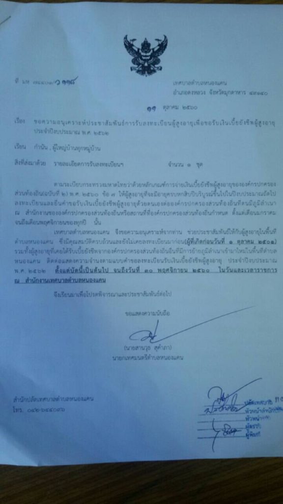ประชาสัมพันธ์การรับลงทะเบียนผู้สูงอายุเพื่อขอรับเงินเบี้ยยังชีพผู้สูงอายุประจำปีงบประมาณ พ.ศ. ๒๕๖๒