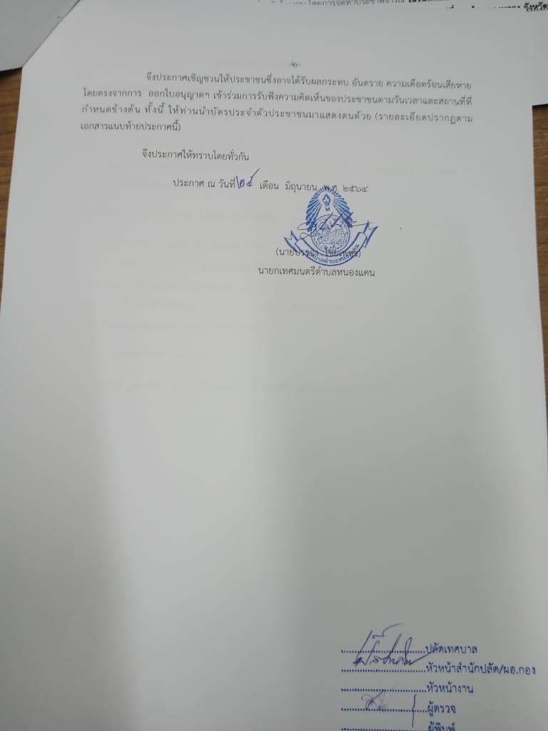 ประกาศเทศบาลตำบลหนองแคน เรื่อง การับฟังความคิดเห็นของประชาชนในการพิจารณาเกี่ยวกับโรงงาน