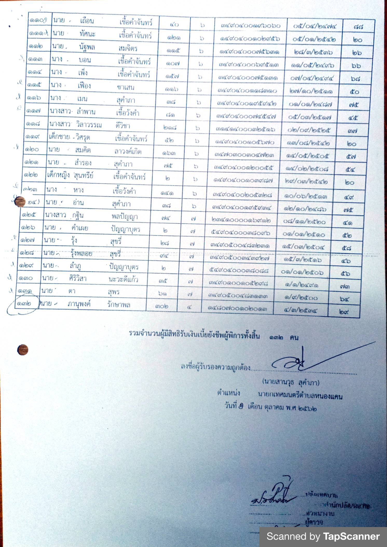 สรุปบัญชีรายชื่อผู้มีสิทธิรับเงินเบี้ยยังชีพผู้พิการของเทศบาลตำบลหนองแคน