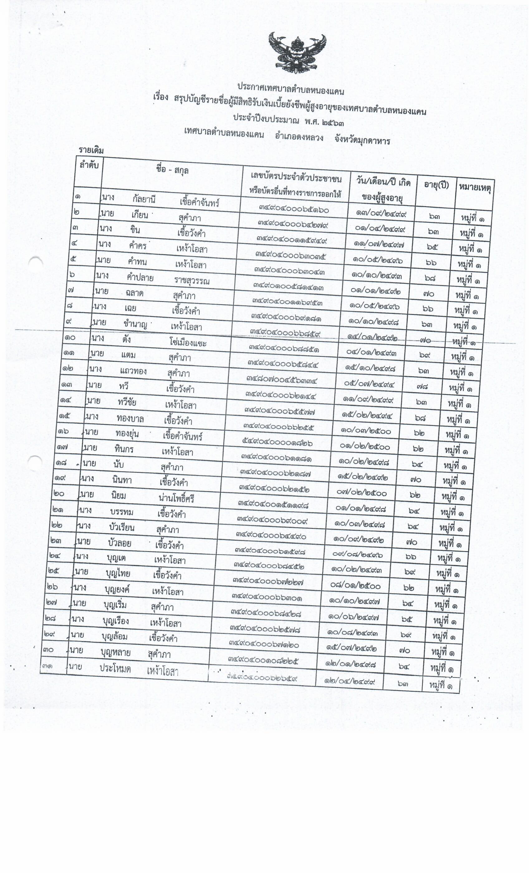 ประกาศบัญชีรายชื่อผู้มีสิทธิรับเงินเบี้ยยังชีพผู้สูงอายุ ของเทศบาลตำบลหนองแคน ประจำปีงบประมาณ พ.ศ.2563