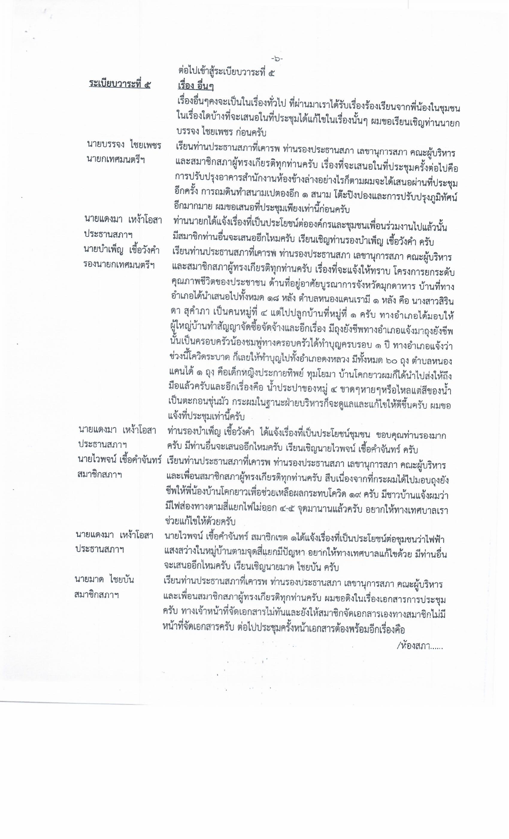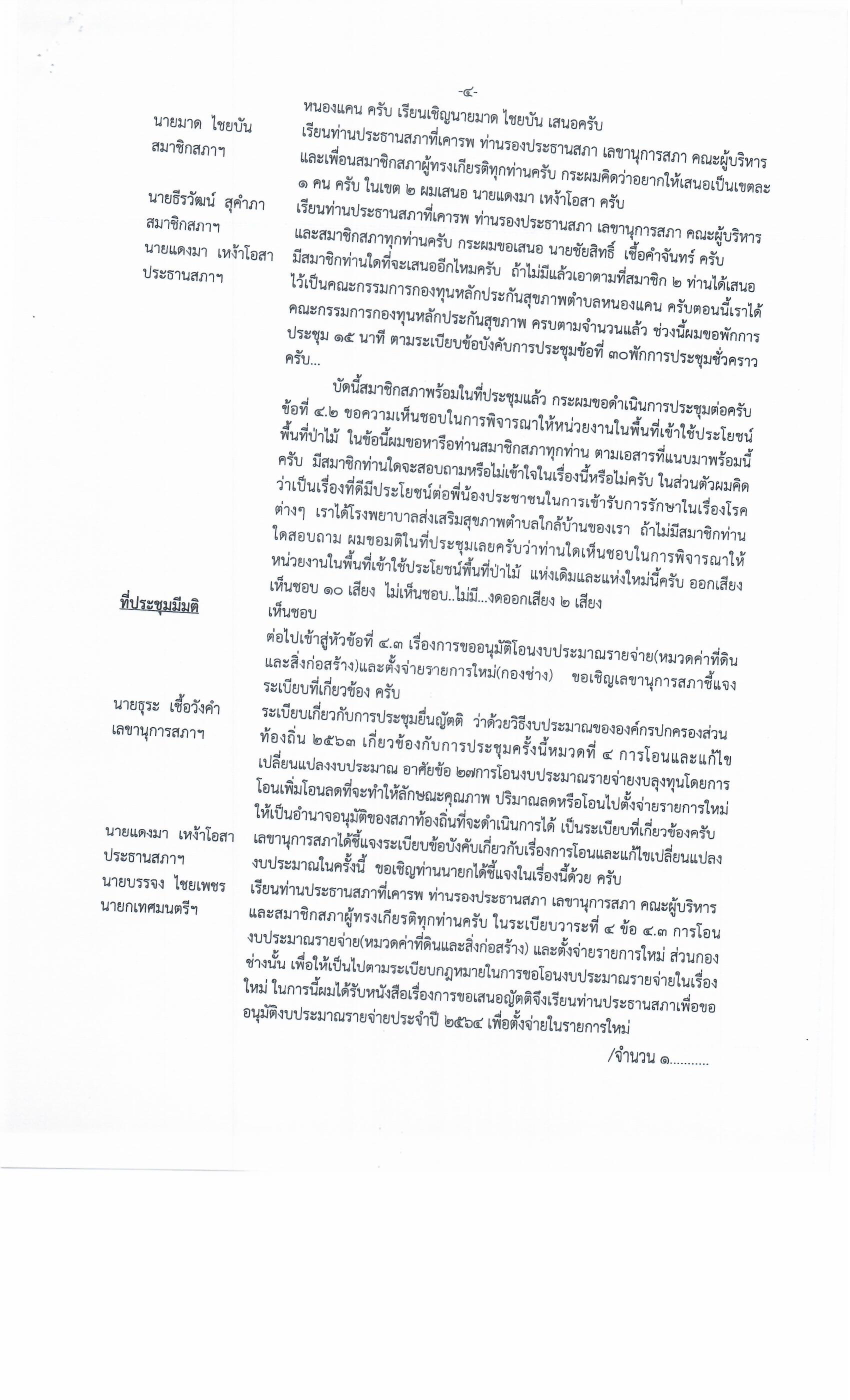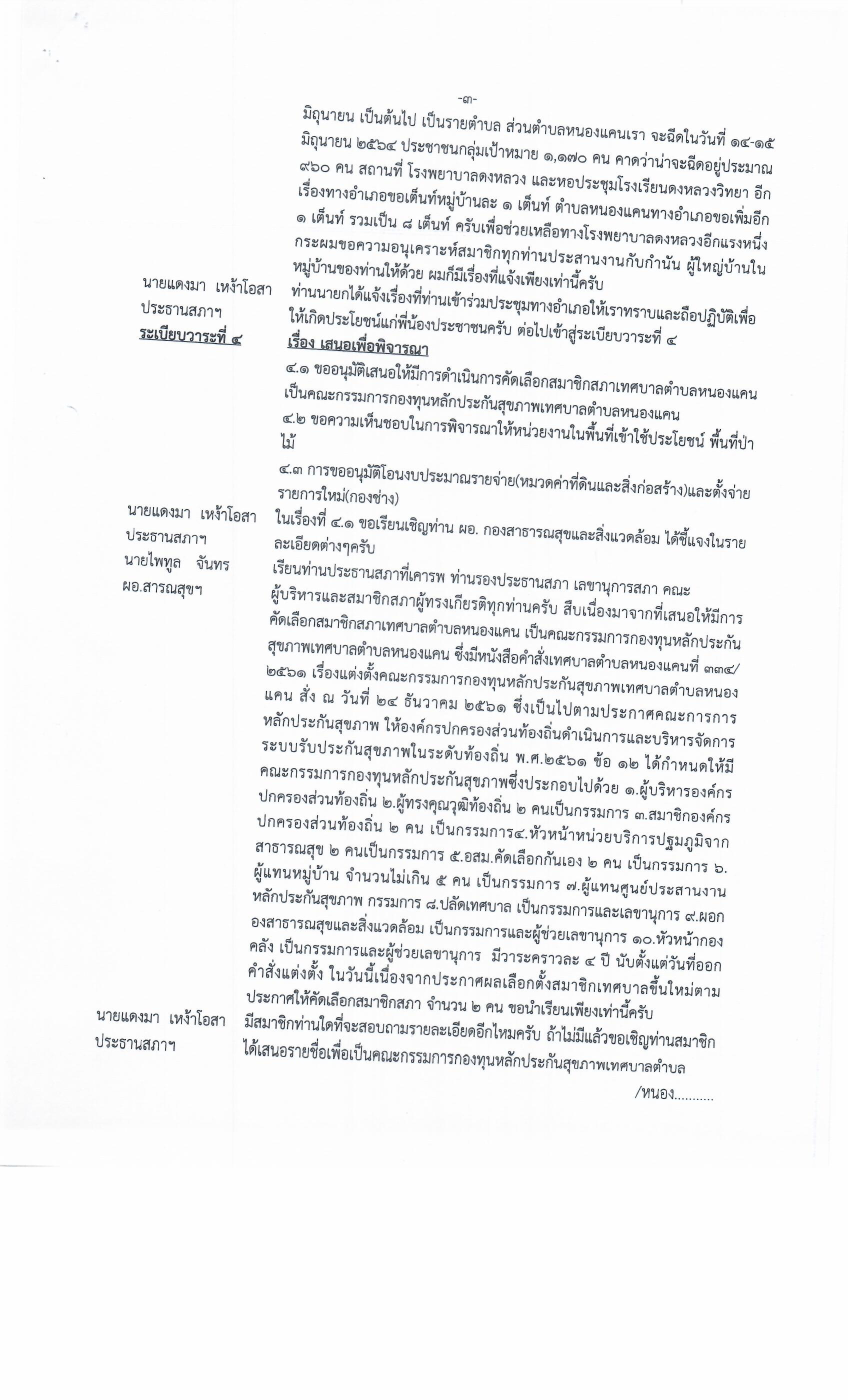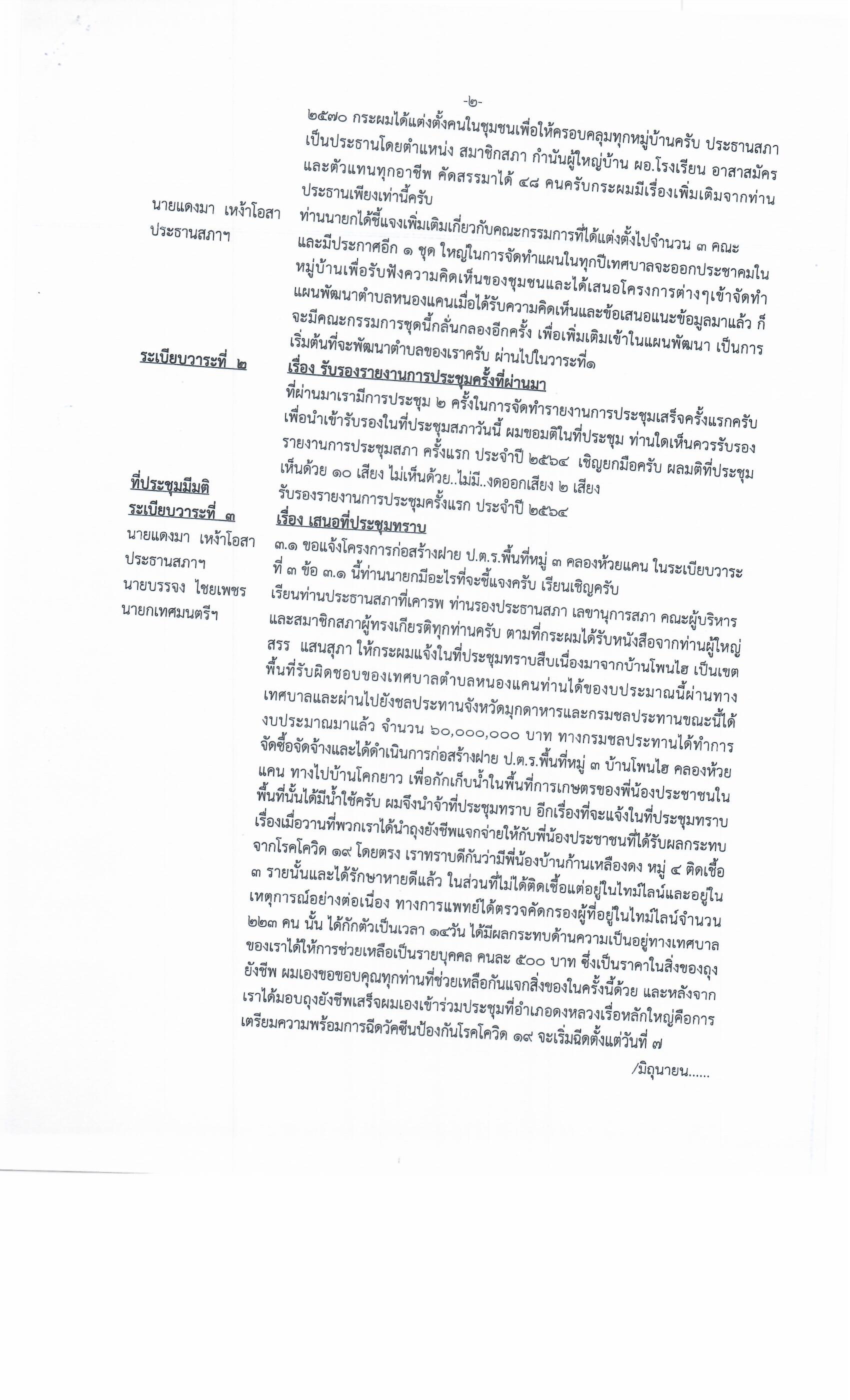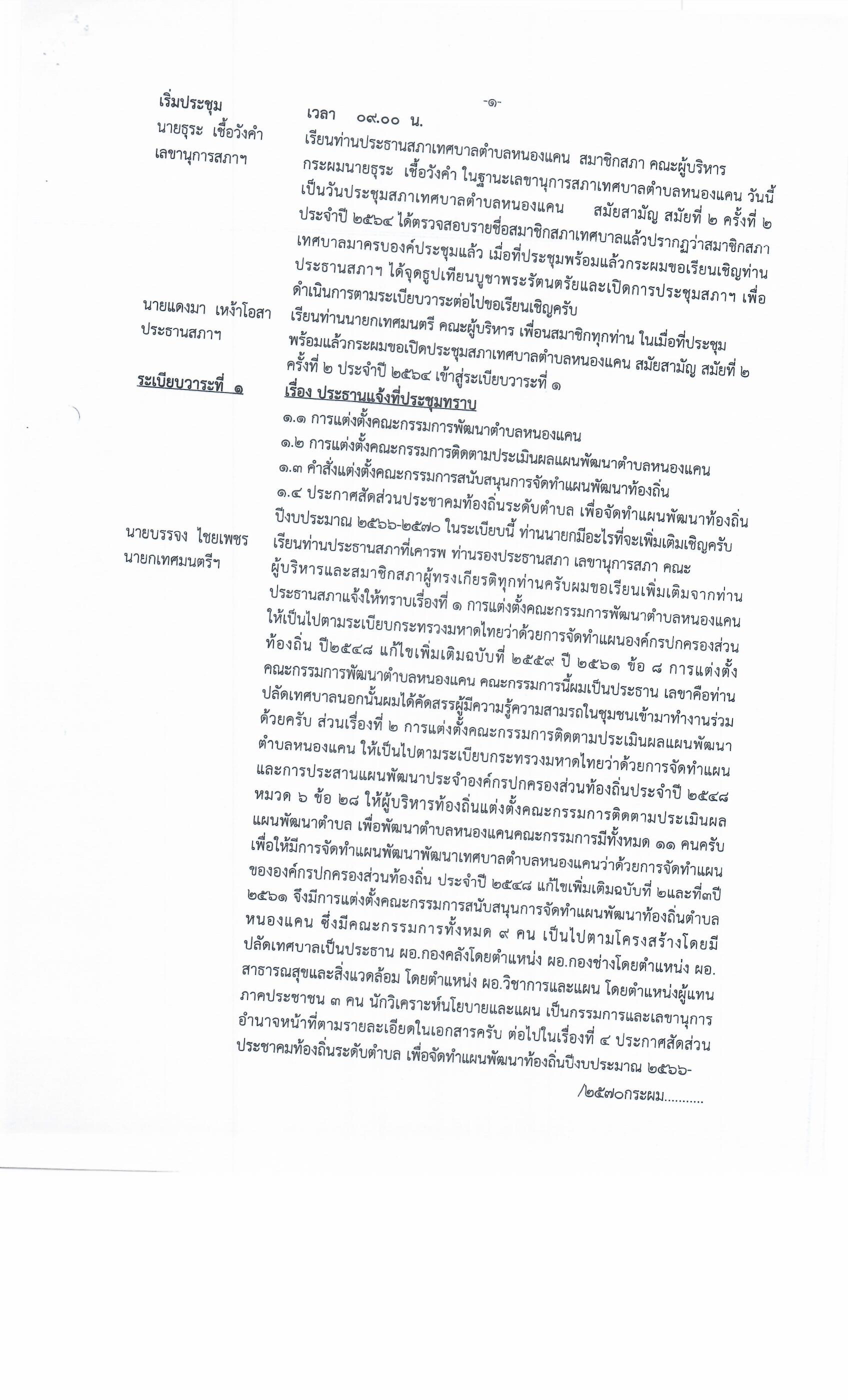 บันทึกการประชุมสภาเทศบาลตำบลหนองแคน สมัยสามัญ สมัยที่ 2 ครั้งที่ 2 ประจำปี 2564