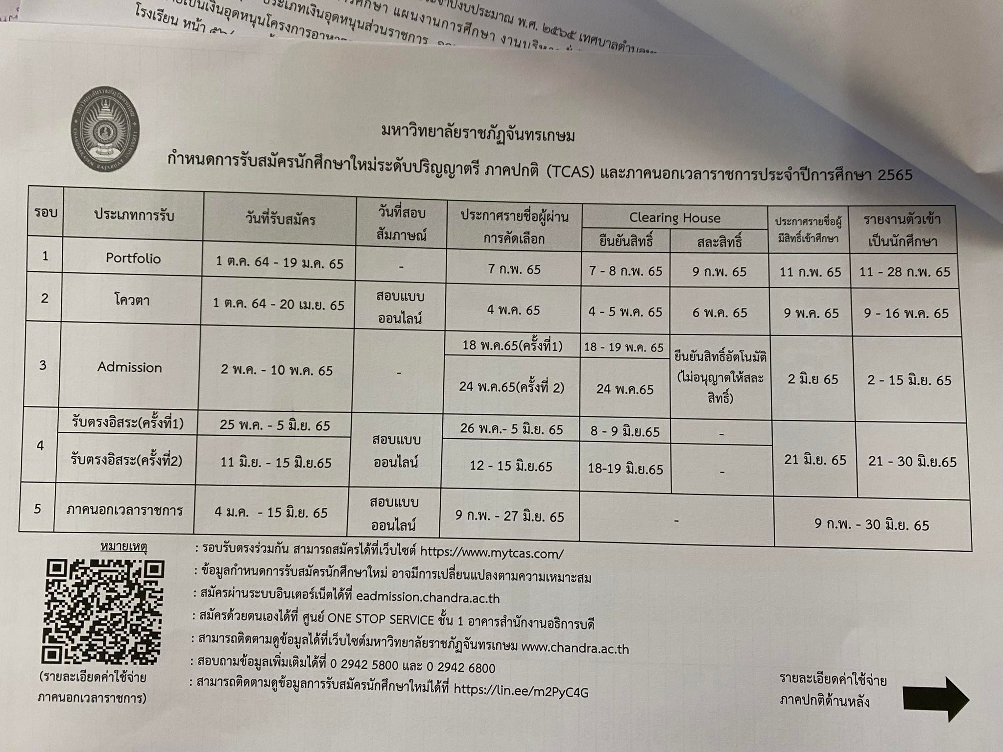 มหาวิทยาลัยราชภัฏจันทรเกษม เปิดรับสมัครนักศึกษาใหม่