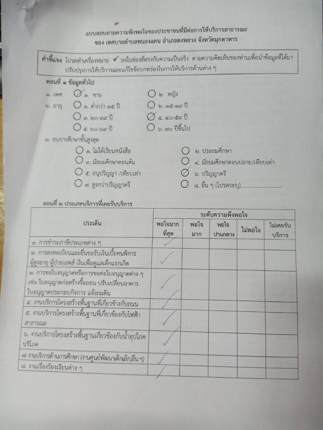 แบบสอบถามความพึงพอใจของประชาชนที่มีต่อการให้บริการสาธารณะ ของเทศบาลตำบลหนองแคน