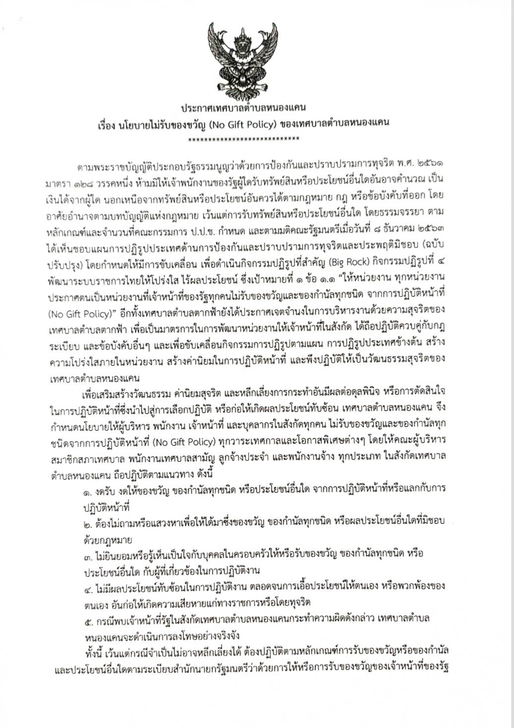ประกาศ เรื่อง มาตราการจัดการเรื่องร้องเรียนทุจริตในปี พ.ศ.2566