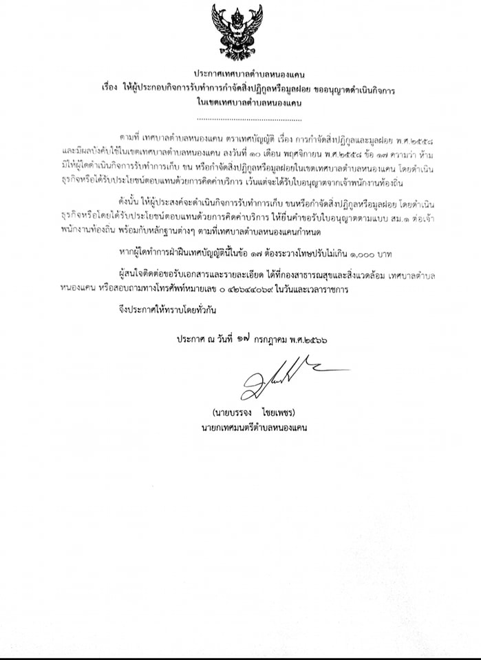 ขออนุญาตประชาสัมพันธ์ เรื่อง ให้ผู้ประกอบกิจการรับทำการกำจัดสิ่งปฏิกูลหรือมูลฝอย ขออนุญาตดำเนินกิจการ ในเขตเทศบาลตำบล