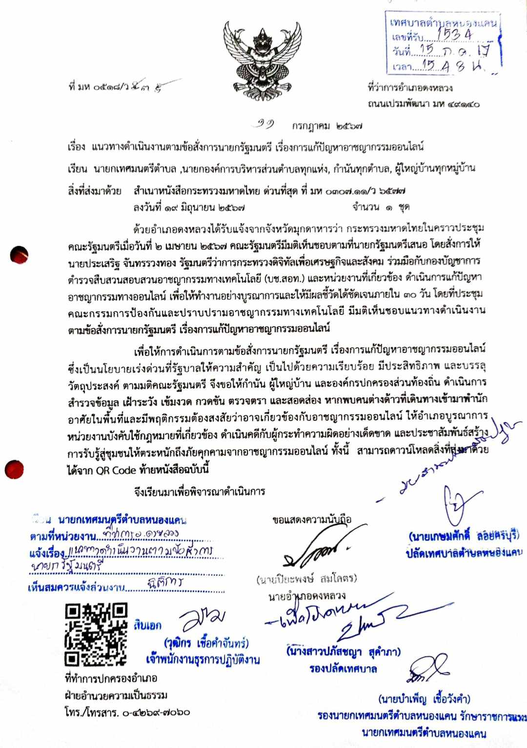 ขอประชาสัมพนธ์ เรื่อง แนวทางดำเนินงานตามข้อสั่งการนายกรัฐมนตรี เรื่อง การแก้ปัญหาอาชญากรรมออนไลน์