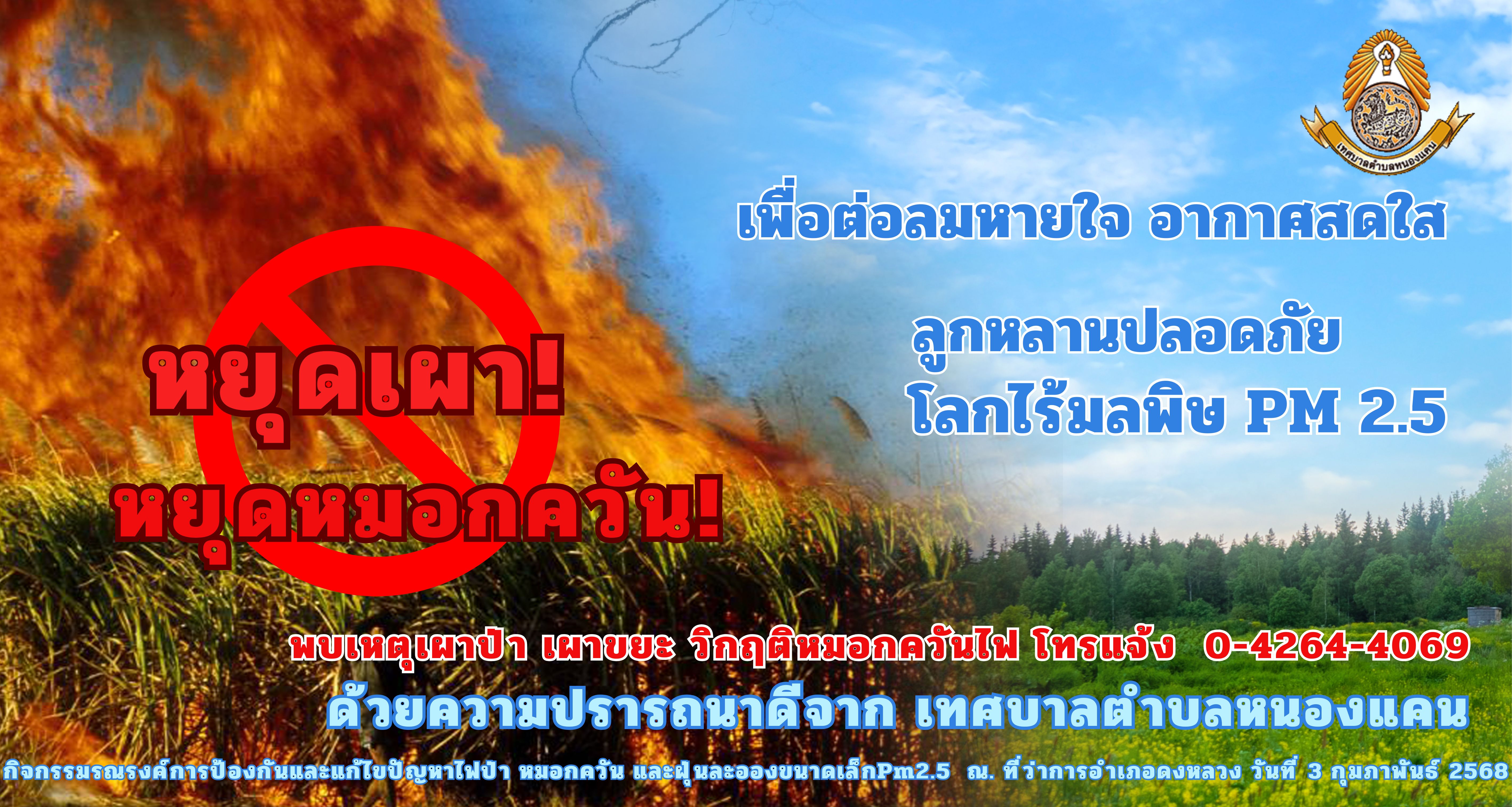 ชื่อเรื่อง : ขอประชาสัมพันธ์ เรื่อง " รณรงค์หยุดเผาในที่โล่งแจ้ง เพื่อลดปัญหามลพิษจากไฟป่าหมอกควัน และฝุ่นละอองขนาดเล็ก (PM 2.5) "
