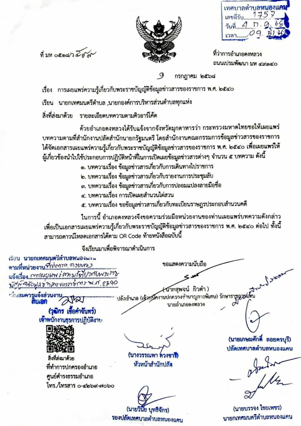 ชื่อเรื่อง : การเผยแพร่ความรู้เกี่ยวกับพระราชบัญญัติข้อมูลข่าวสารของราชการ พ.ศ.2540
